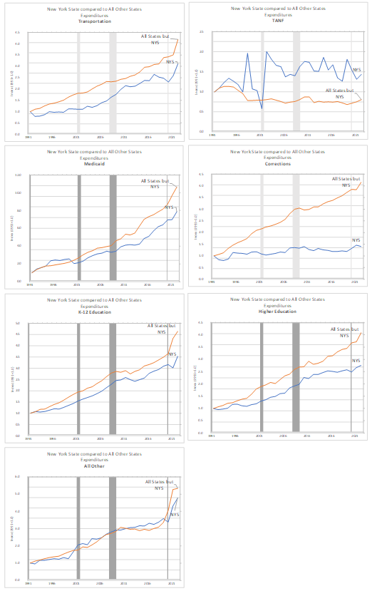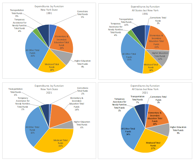 Figure 1 Comparative spending, NYS and All Other States, 1991 and 2021